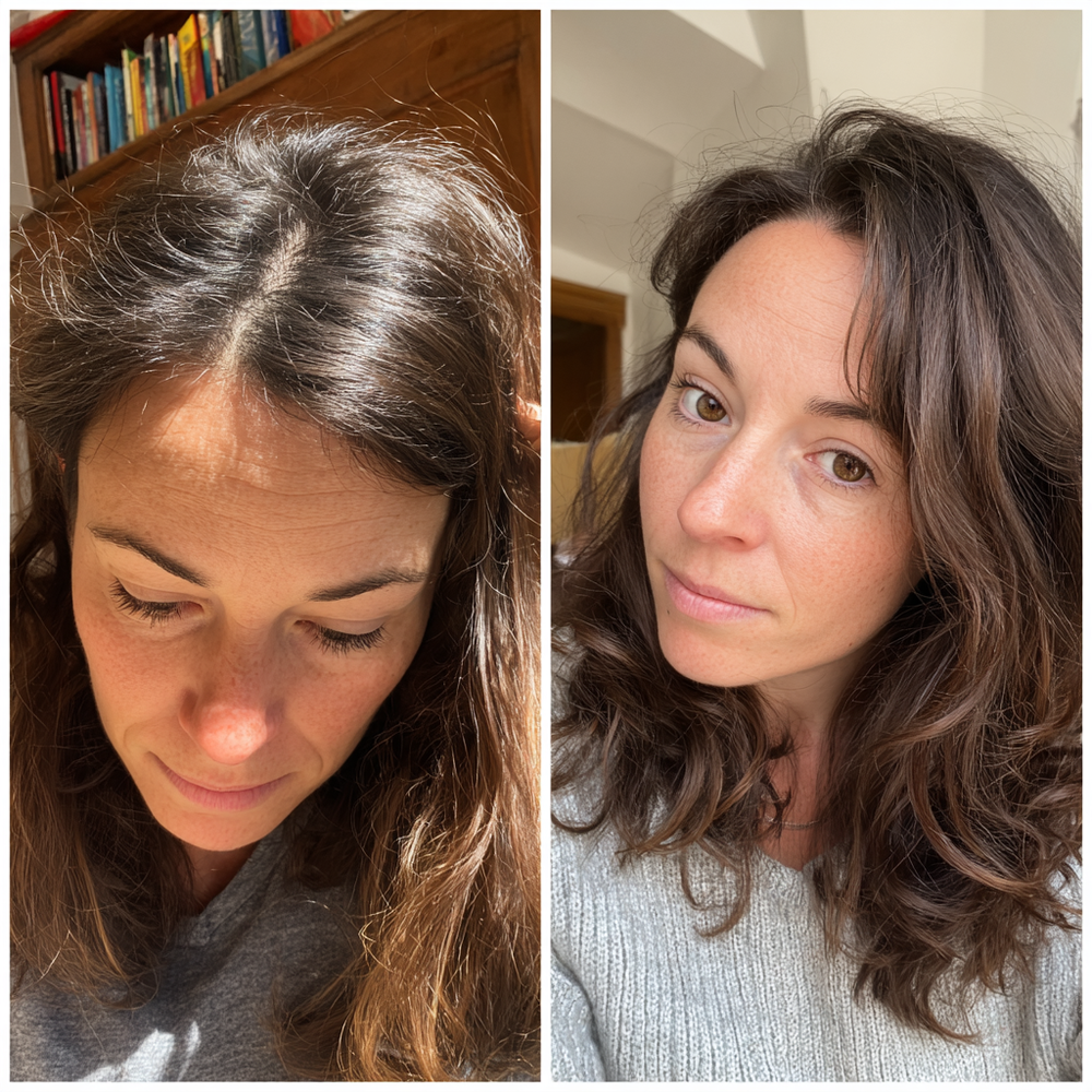 Around the 90 Day mark you may start to see thinning spots now fuller, the part line narrower and hair healthier. You'll see a denser look and feel less need to hide gaps in your hair!